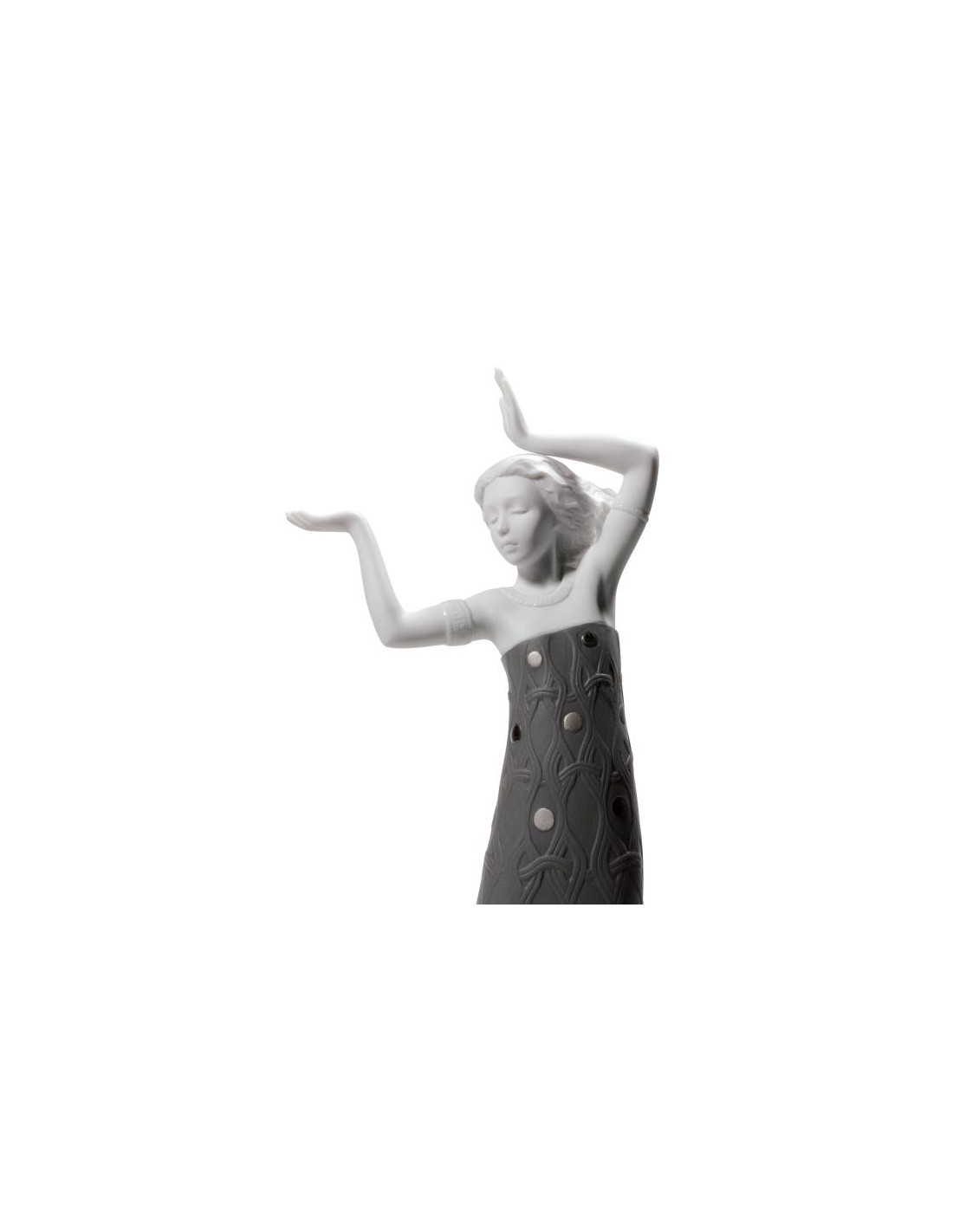Arethusa was one of the Hesperides or Twilight Nymphs, responsible for caring for the garden owned by the goddess Hera, where there was the golden apple tree that provided immortality. This beautiful story from classical mythology inspired this elegant piece of matte porcelain, which highlights the contrast between the paleness of the skin and the beautiful decoration of the tunic, finished in dark tones and decorated with lustres.