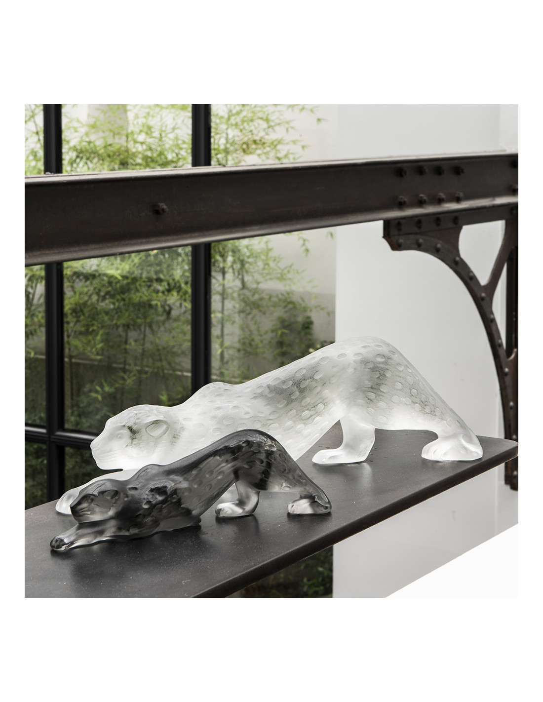 Nimble and sensual, she approaches stealthily, preparing for her attack. Her slim silhouette is enhanced by powerful muscles covered with crystal fur sculpted by thousands of luminous spots. Designed by Marie-Claude Lalique, the Zeila Panther embodies the feline strength and grace.