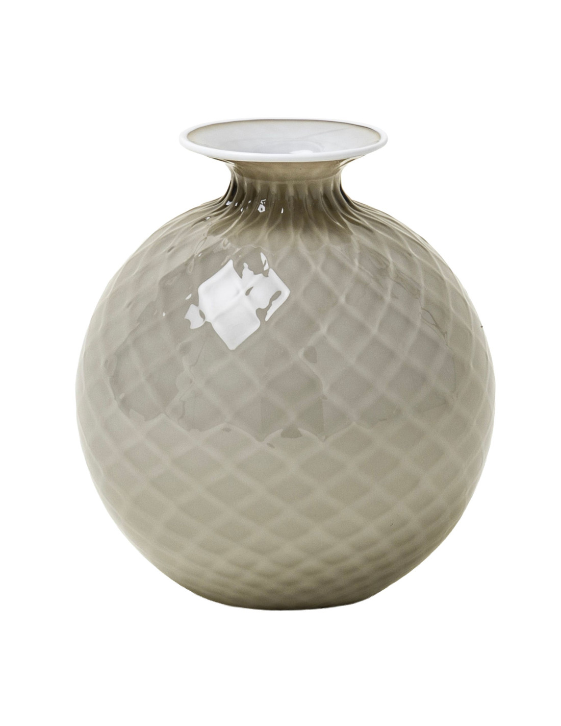 The optical illusion is couched in its name: Balloton, the traditional glassblowing technique that recreates the matelassé look on the surface.