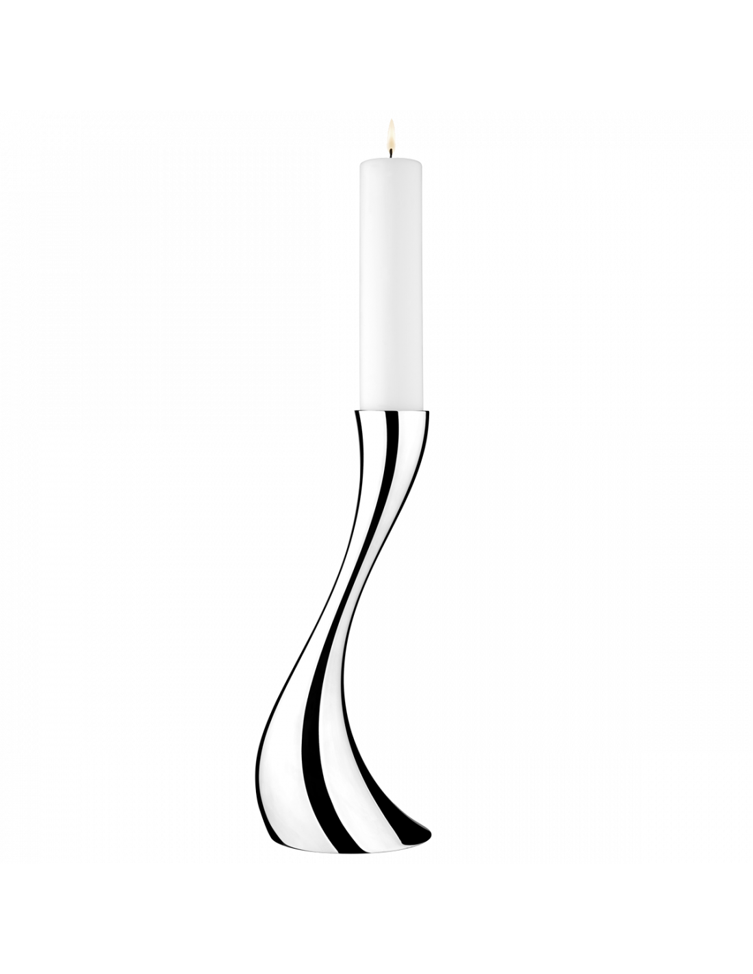 L'originale versione da tavolo dell'iconico portacandele Cobra di Georg Jensen è cresciuta! Le stesse curve senza peso e la grazia sensuale sono presenti, ma ora sovradimensionate per uno spettacolare candelabro da terra. In piedi da solo o in gruppo, il candelabro aggiungerà sicuramente un tocco drammatico a qualsiasi stanza. La filosofia del design del designer Constantin Wortmann è che "la forma segue le emozioni" e si sforza con ogni pezzo di evocare una sorta di risposta emotiva. La sua serie Cobra è stata una delle collezioni più popolari di Georg Jensen, dimostrando che il lavoro di Wortmann può davvero creare molto affetto e rispetto. Il portacandele è realizzato in acciaio inossidabile prima di essere lucidato a specchio.