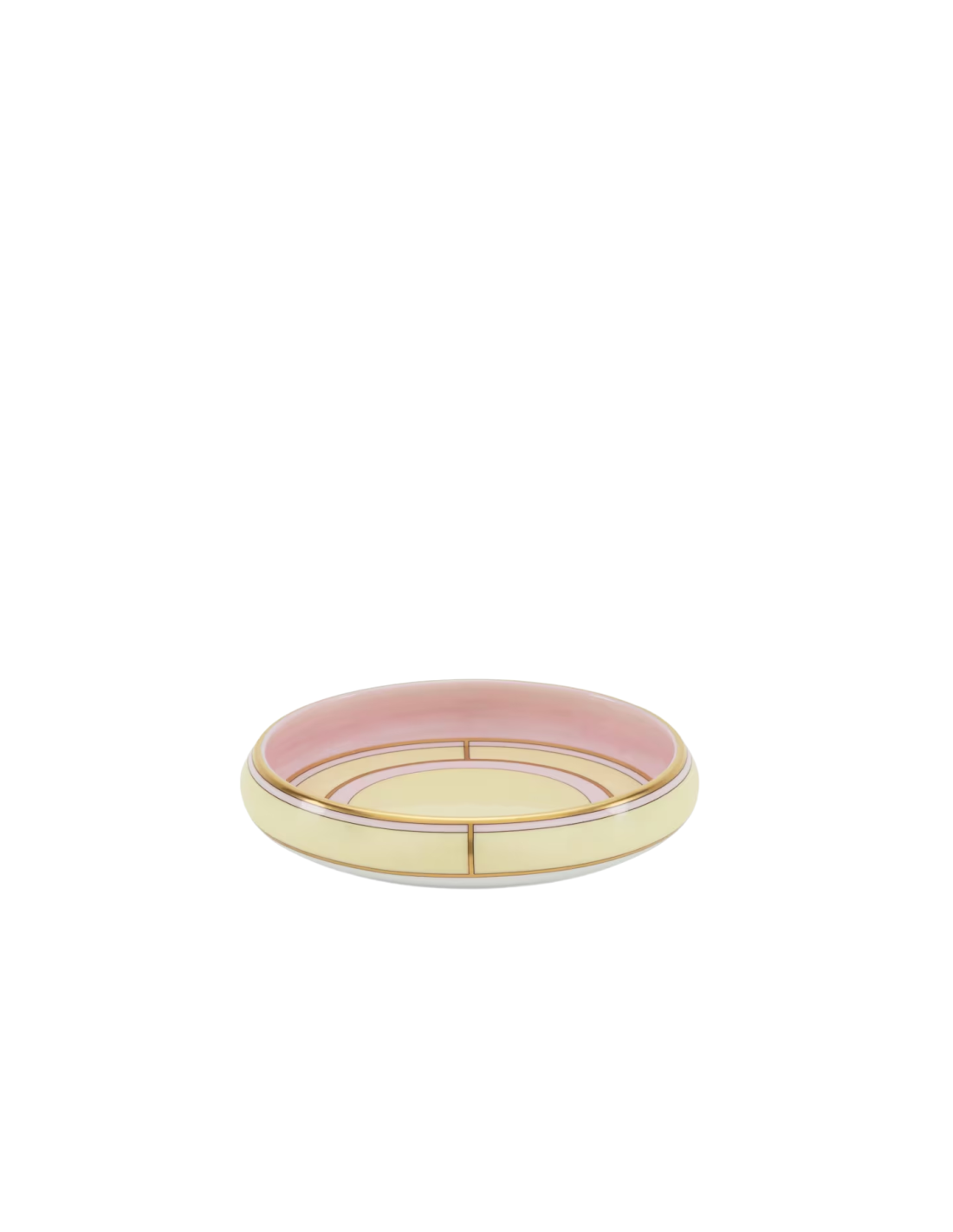 Svuotatasche rotondo in porcellana con decoro Giallo e oro. Nuova collezione Diva.