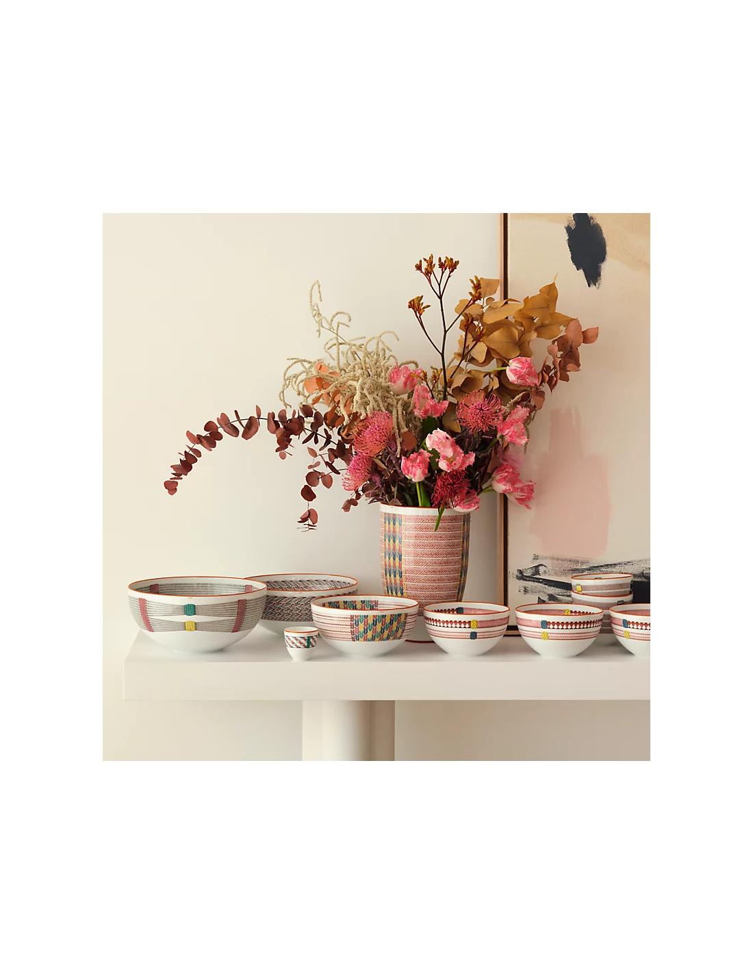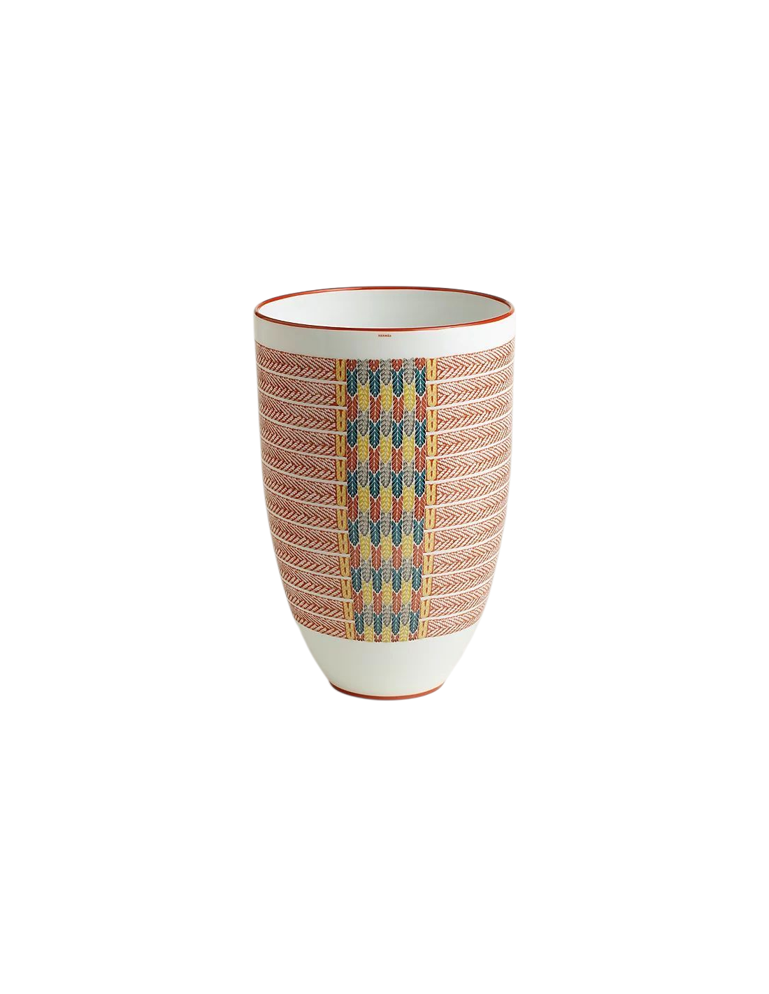 Tressages Équestres si ispira alle passamanerie e all’intrecciatura dei finimenti, che risalgono agli inizi della storia della Maison. Tra questi intrecci di fili di cotone o pelle è visibile la firma Hermès: la mano dell’artigiano, ma anche cavallo, cavaliere e tutto ciò che li lega. Questo servizio da tavola è un sottile gioco tra rappresentazioni figurative e astratte. Composto da ventisette pezzi, di cui dieci rivelano nuove forme concave, si adatta alle diverse cucine di tutto il mondo. Il bianco caolino della porcellana, onnipresente, mette in luce i disegni di Virginie Jamin. Il suo tratto sottile o fitto, ma sempre preciso, dona volume alle texture. I colori aciduli, come giallo limone e menta, contrastano con il blu petrolio e i colori naturali della fibra o della pelle. Per ciascuna creazione, i motivi sono diversi e giocano con le dimensioni. Ogni combinazione di oggetti è equilibrata e rappresenta altrettante storie da raccontare attorno al tavolo. Prego, prenda posto!