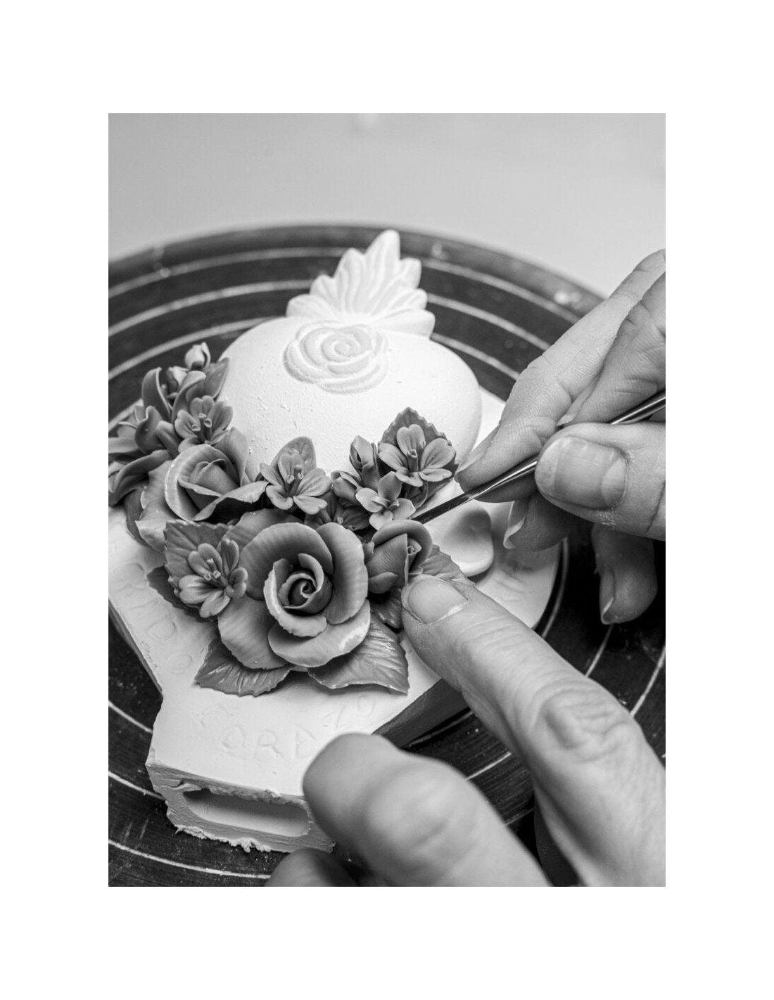 Quest'opera è una rappresentazione del Sacro Cuore di Maria, una delle immagini più venerate dai cristiani di tutto il mondo. Simboleggia l'amore puro e incondizionato di Maria per suo figlio Gesù e per l'umanità. Questa interpretazione della porcellana si ispira alla tradizione dell'immaginario religioso e alle opere dei grandi maestri della storia dell'arte.