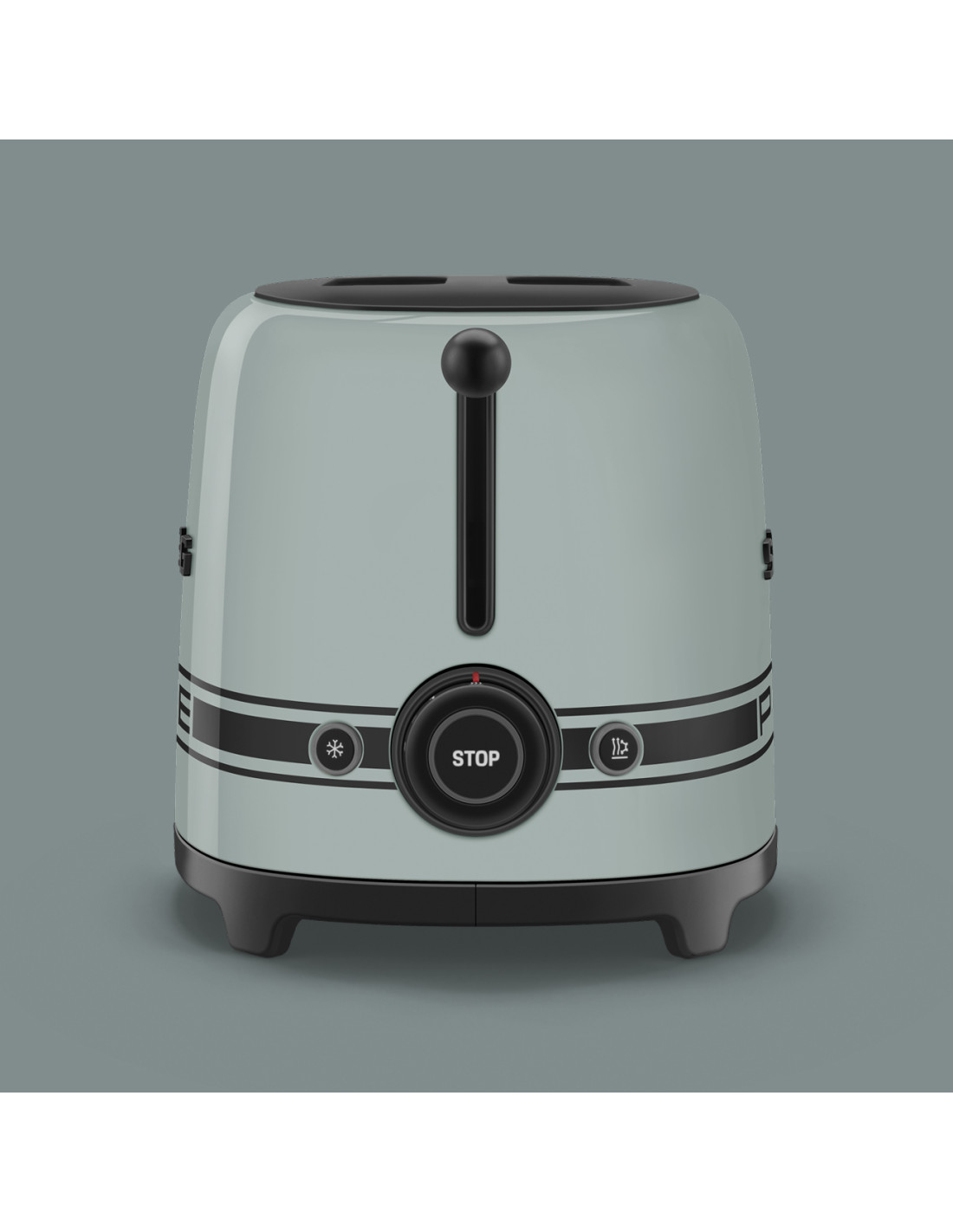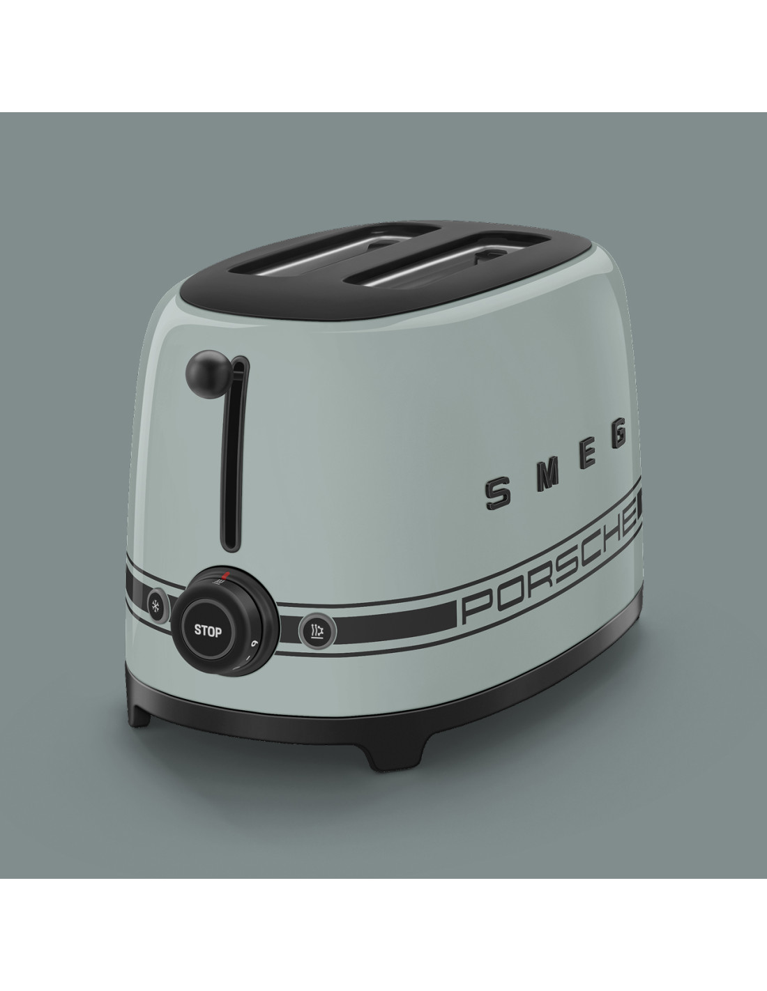 Il tostapane Porsche x SMEG unisce design iconico e funzionalità. Ispirato allo stile degli anni ’50, presenta la caratteristica striscia Porsche lungo il corpo e dettagli raffinati in nero opaco. L’interfaccia personalizzata —con la manopola di controllo numerata e i pulsanti funzione dedicati—aggiunge un tocco distintivo e sportivo.