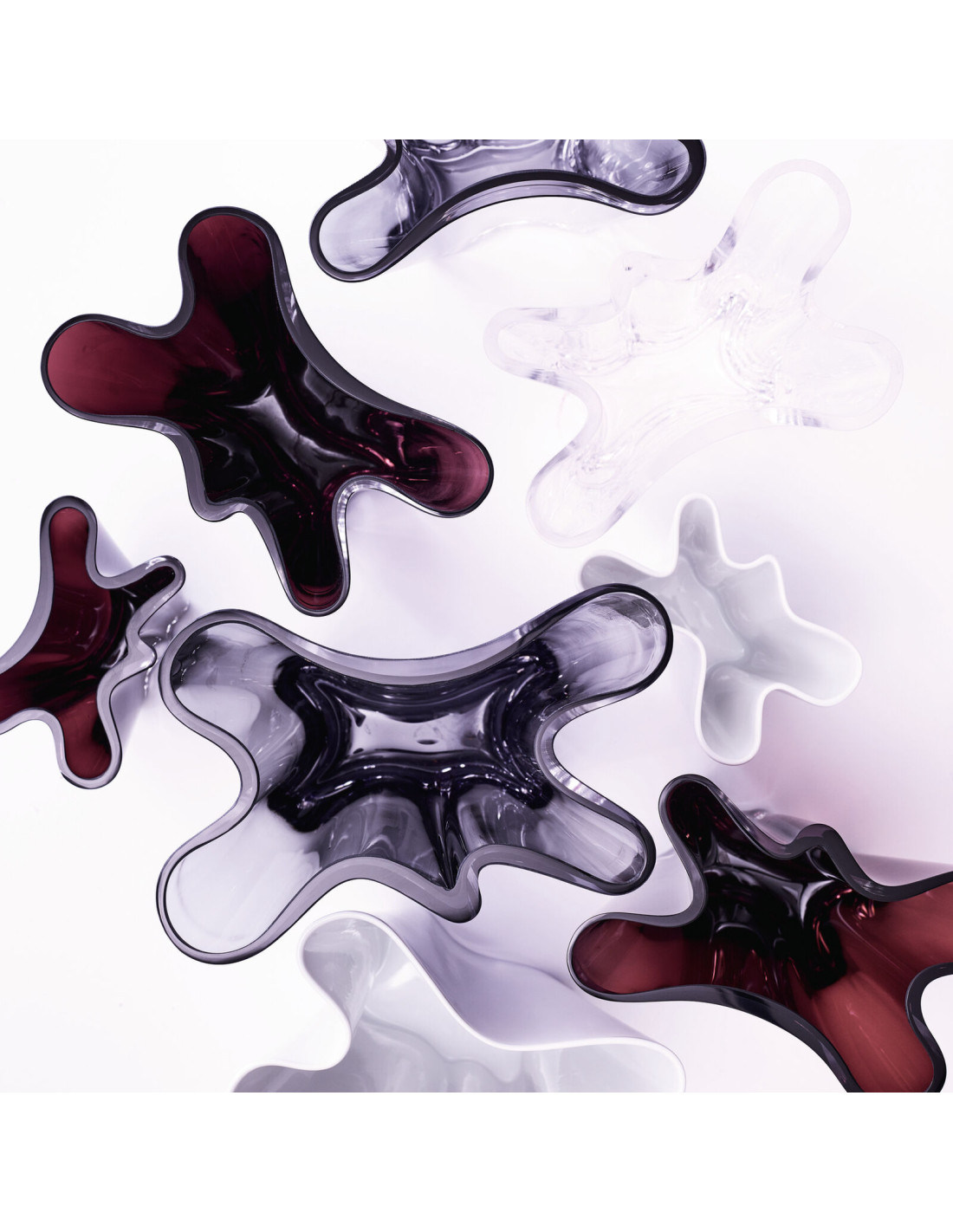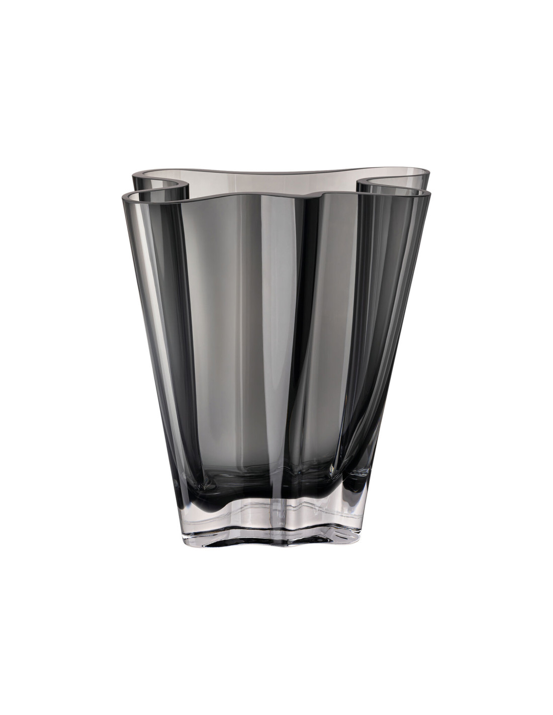 Gli opposti si attraggono. Concretamente in basso, astrattamente in alto, “Flux” porta la polarità all'unità. Il design Darling in fine porcellana è ora disponibile anche come vaso di vetro dalla bella forma: molto classico in trasparente, puristico in grigio e in moderno bacca. Il materiale trasparente sottolinea la leggerezza e sottolinea la forma fluida del vaso, in cui trovano posto con stile composizioni floreali di ogni tipo.