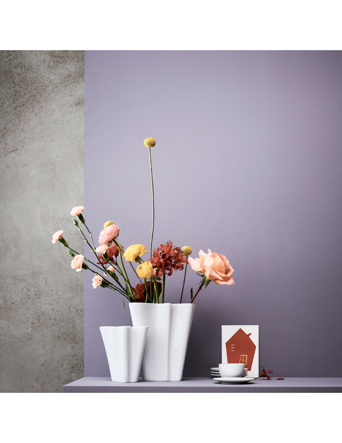 Gli opposti si attraggono. Concretamente in basso, astrattamente in alto, “Flux” porta la polarità all'unità. Il design Darling in fine porcellana è ora disponibile anche come vaso di vetro dalla bella forma: molto classico in trasparente, puristico in grigio e in moderno bacca. Il materiale trasparente sottolinea la leggerezza e sottolinea la forma fluida del vaso, in cui trovano posto con stile composizioni floreali di ogni tipo.